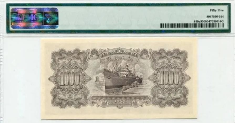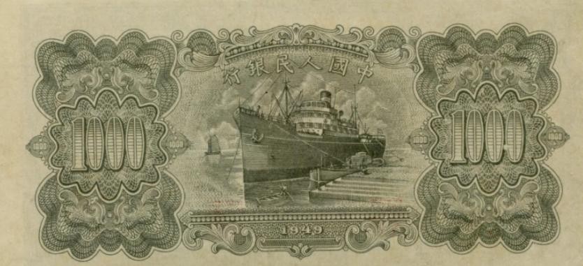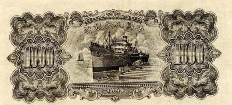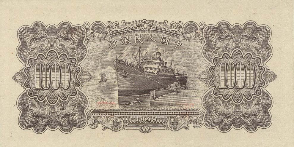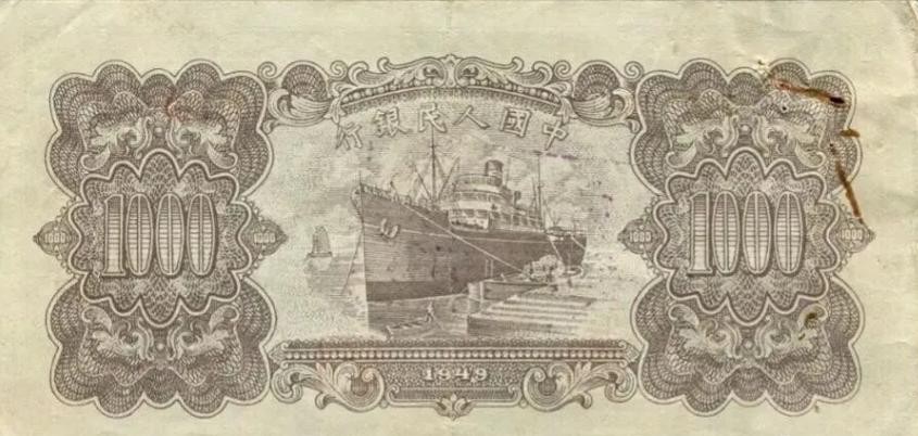 第一版人民币 壹仟圆 运煤与耕田 背面