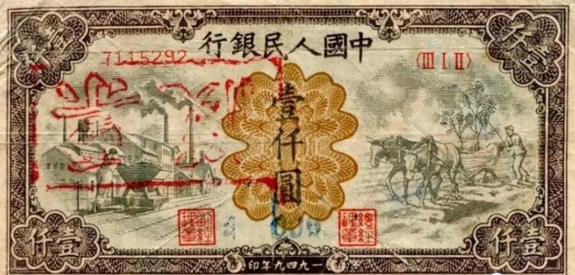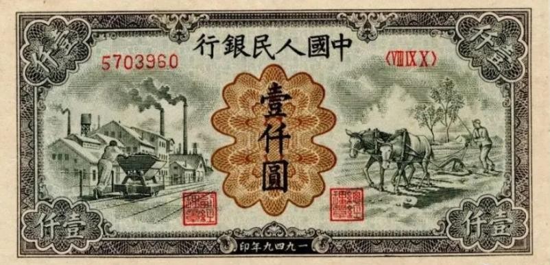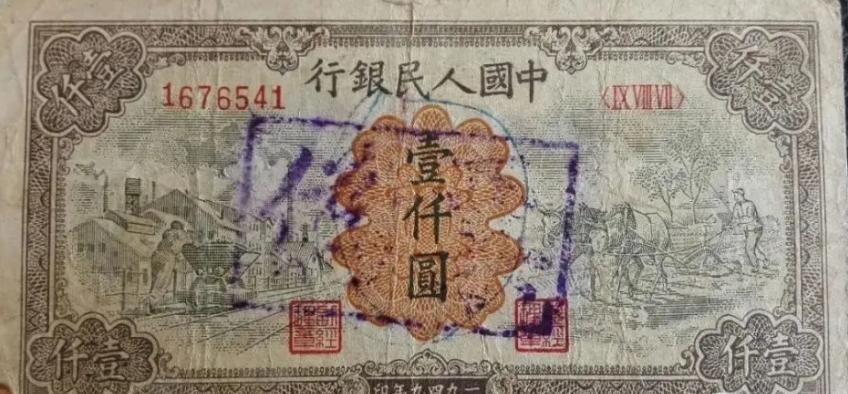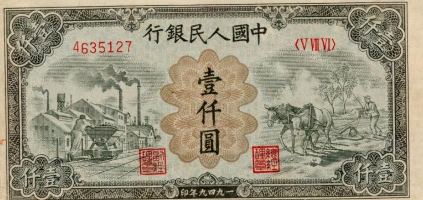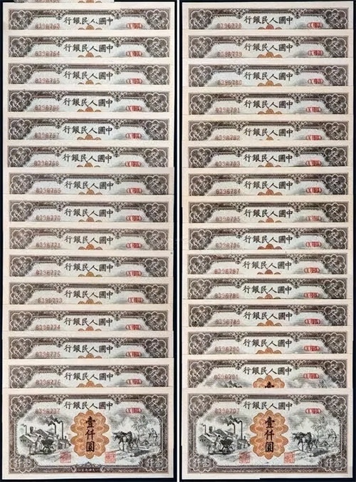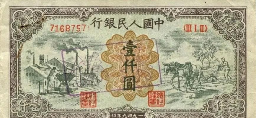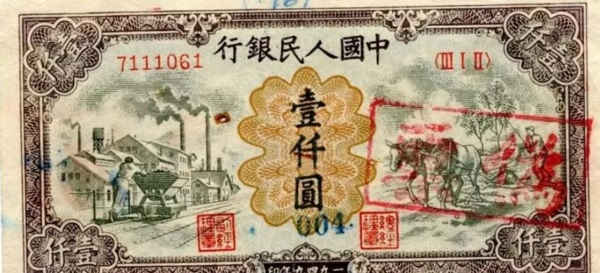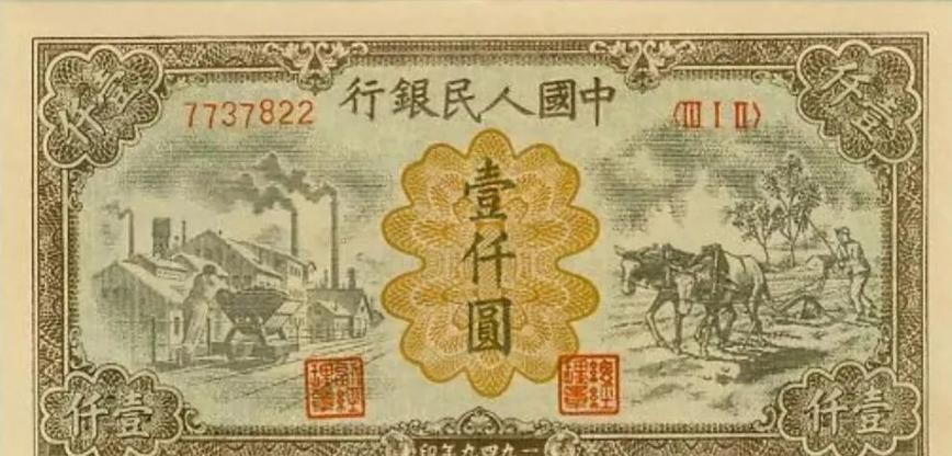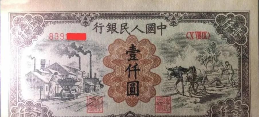你见过壹仟元面值的人民币吗?人民币壹仟圆运煤与耕田暗记有哪些