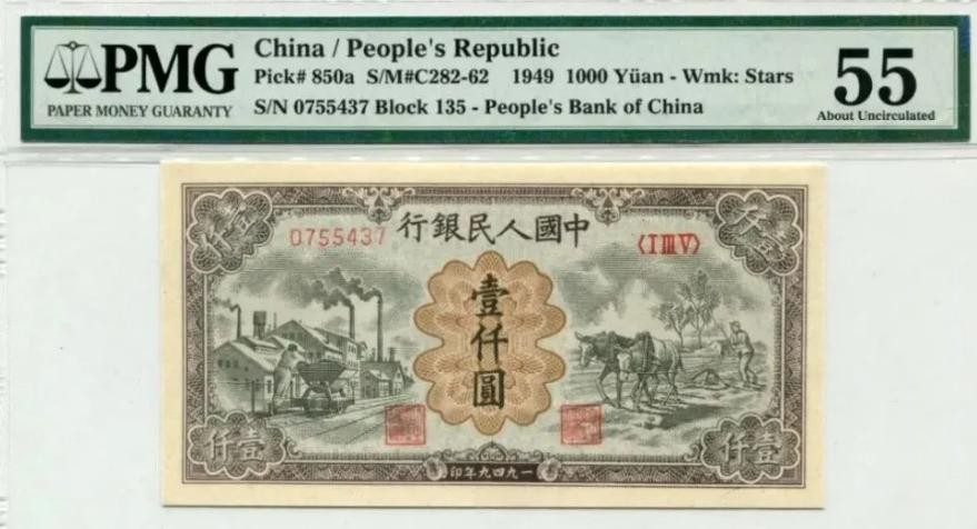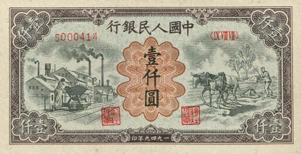 第一版人民币 壹仟圆 运煤与耕田 正面