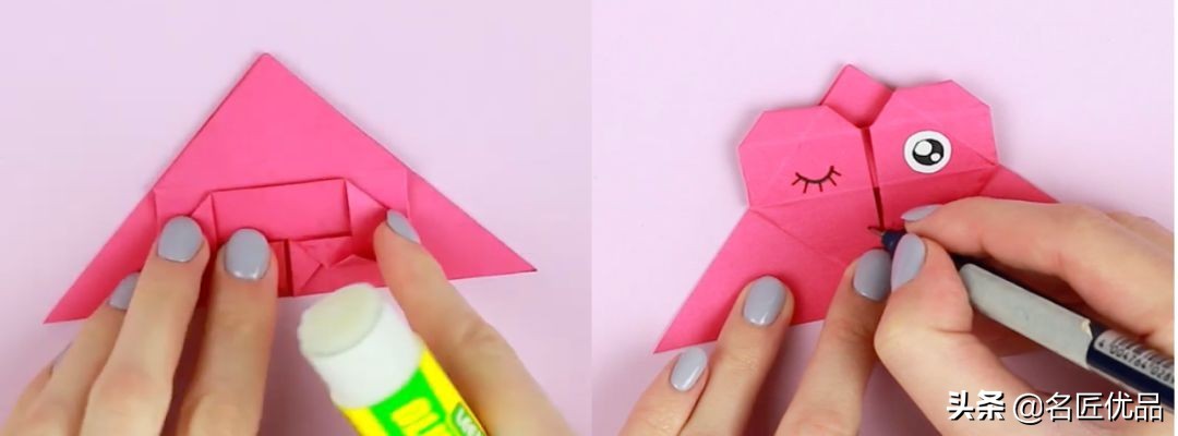 材料和工具:折纸、笔、固体胶