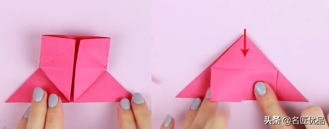 7.向下折。如下图。