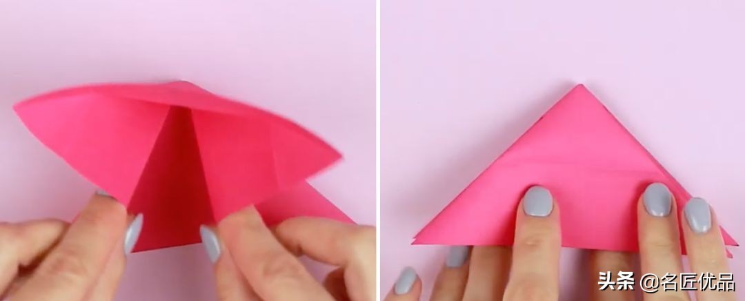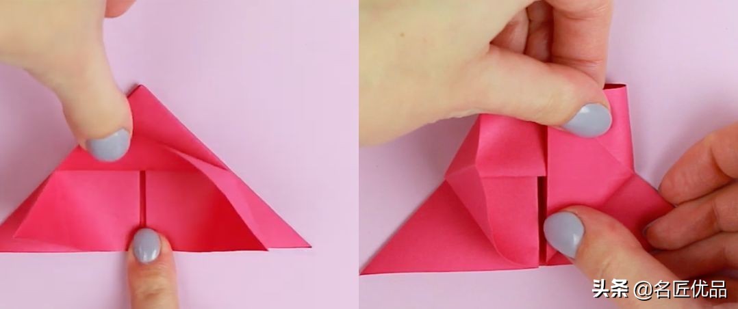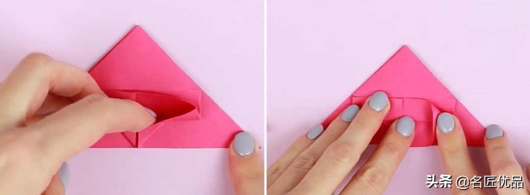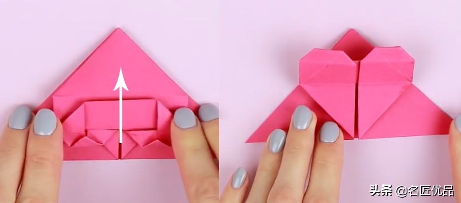13.左边下三角形向上折后,心形就折好,向上翻。