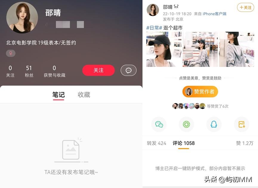 邵晴的账号已经开启防护模式,其他社交账号也已经清空内容。