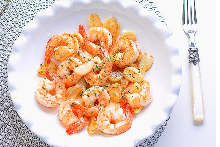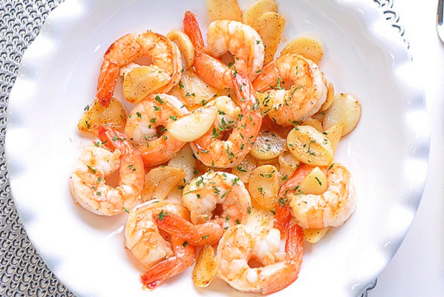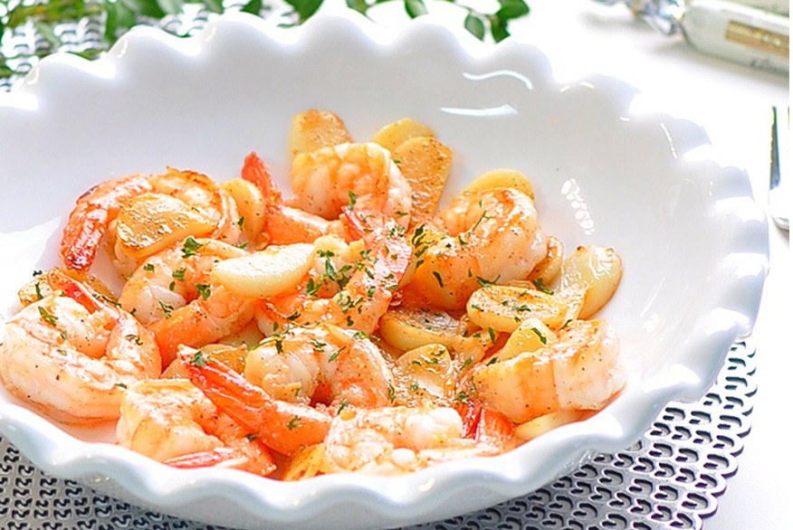 冷冻虾 10只、黄油 2勺、蒜瓣 10个