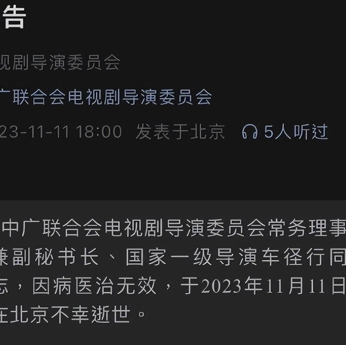 导演车径行突发疾病去世!最后露面皮肤松弛,妻子是知名演员!
