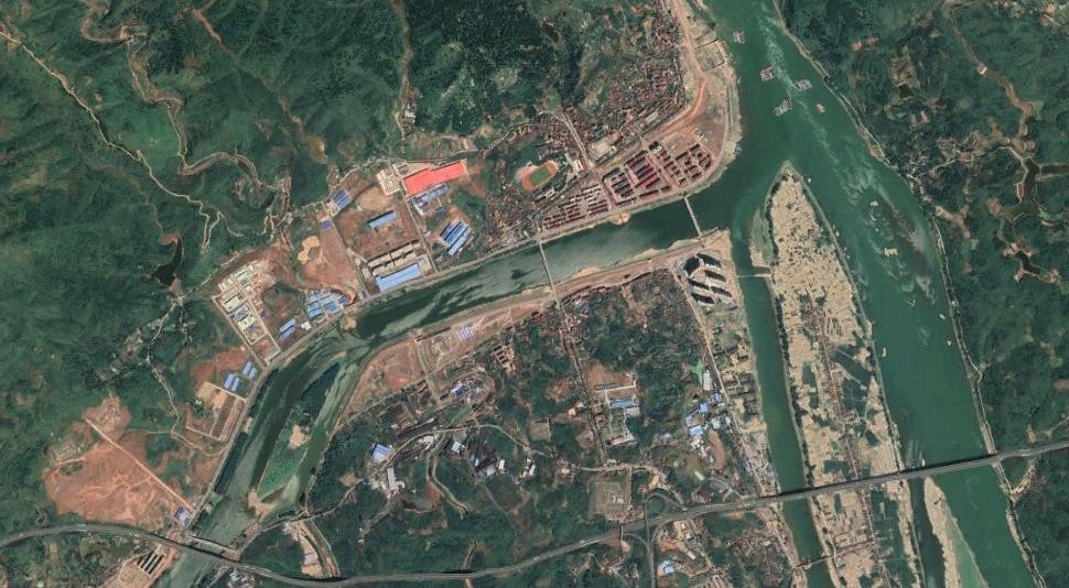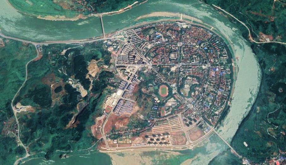 卫星上看湖南泸溪县:新城三面环水,老城两江交汇