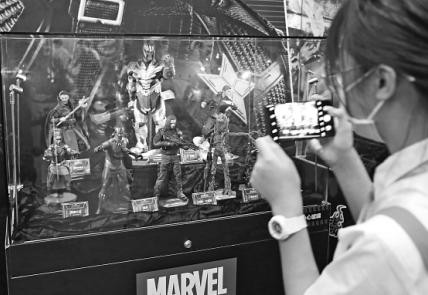 7月16日至20日,CCG中国国际动漫游戏博览会在上海世博展览馆举办。美国漫威、DC、暴雪公司的“英雄”,日本万代的高达机器人,还有玄机、腾讯出品的本土古装卡通形象,吸引了众多漫迷玩家围观合影,此外现场还有DIY教室可以体验亲手制作模型的乐趣。图为CCG动漫展上美国漫威漫画公司的复仇者联盟、灭霸、银河护卫队、黑豹手办模型吸引眼球。