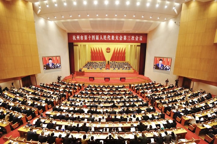 今天上午9时,杭州市第十四届人民代表大会第三次会议在省人民大会堂隆重开幕。