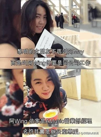后来,阿wing继续在黎明的公司担任助手。2012年黎明和乐基儿因感情问题离婚,加上2年后黎明的父亲因病去世,天王受到的打击非常大,这时性格开朗的阿wing一直陪伴在其左右。两人也因此日久生情,坠入爱河。