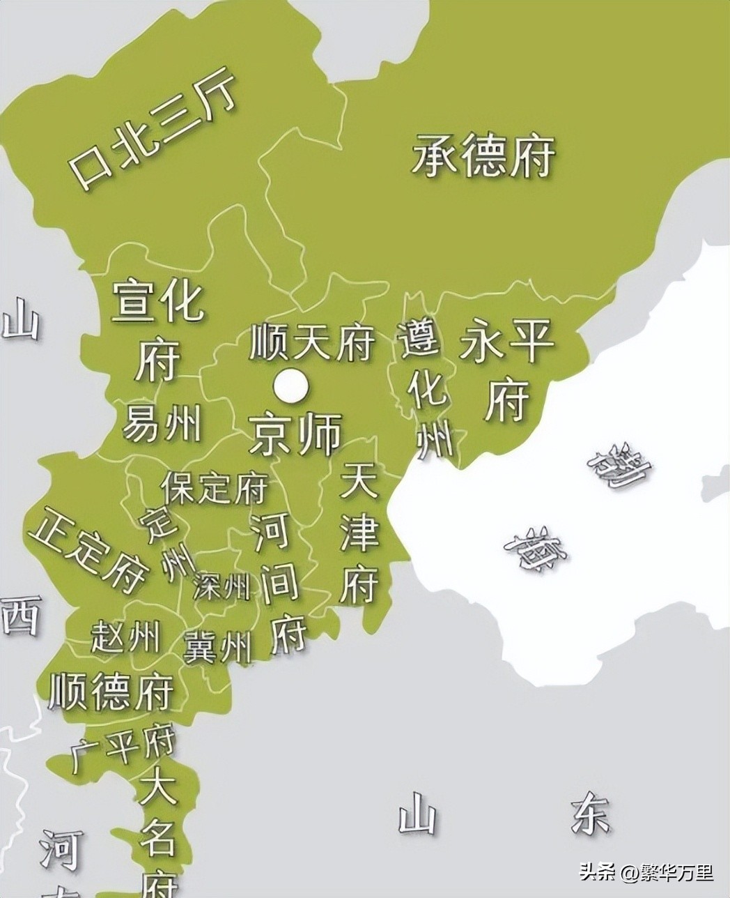 众所周知,我们行省制度出现于元朝。历经元明清三朝几百年时间的调整、合并以后,逐步形成了内陆各省的基本框架格局。截至清朝乾隆皇帝在位时期,直隶省的区划格局基本稳定下来,合计下辖了12个府、6个直隶州。分别是:顺天府、保定府、天津府、正定府、大名府、顺德府、广平府、河间府、承德府、朝阳府、宣化府、永平府、遵化州、易州、冀州、赵州、深州、定州。