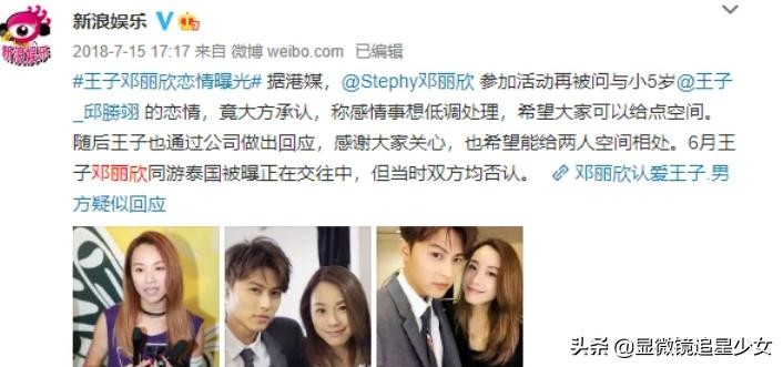 当时王子的经纪人还发声否认两位只是朋友,没想到半个月后,邓丽欣主动承认了恋情。