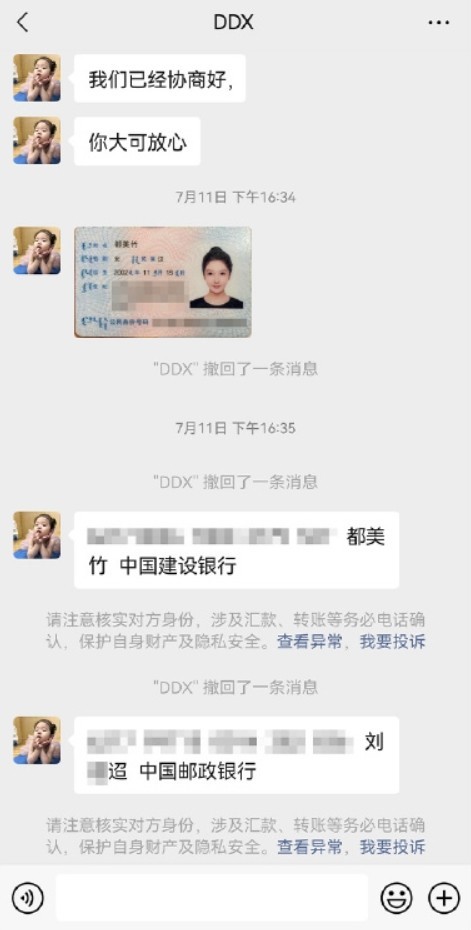 经查,2021年6月,犯罪嫌疑人刘某迢看到都某竹和吴某凡的网络炒作信息后,遂产生冒充相关关系人对涉事双方进行诈骗的想法。期间,刘某迢虚构女性身份,以曾被吴某凡欺骗感情欲共同维权的名义骗取都某竹的信任,使用昵称为「DDX」微信号与都某竹联系,获取都某竹与吴某凡部分交往情况信息。 7月10日,刘某迢利用获取的信息冒用都某竹名义与吴某凡律师联系,以双方达成和解为名索要300万元赔偿,并将自己和都某竹的银行帐户一并发给吴某凡律师。同时,刘某迢使用「北京凡世文化传媒」微信号,自称系吴某凡律师,与都某竹协商达成300万元的和解赔偿,但双方未签署和解协议。