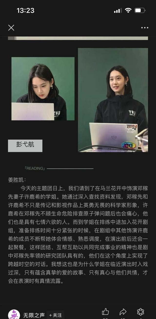 她不仅颜值在线,才华横溢,还担任清华舞蹈队的副队长,话剧《马兰花开》的主要演员,这次更成为两岸交流团的核心成员之一。