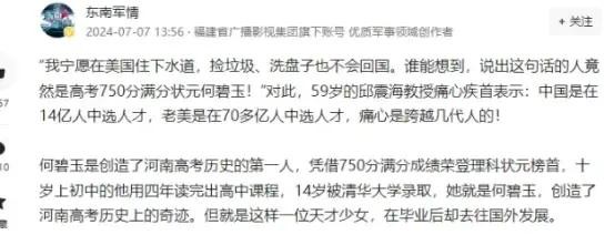 为何高考状元何碧玉会说:我宁愿在美国住下水道,我也不会回中国