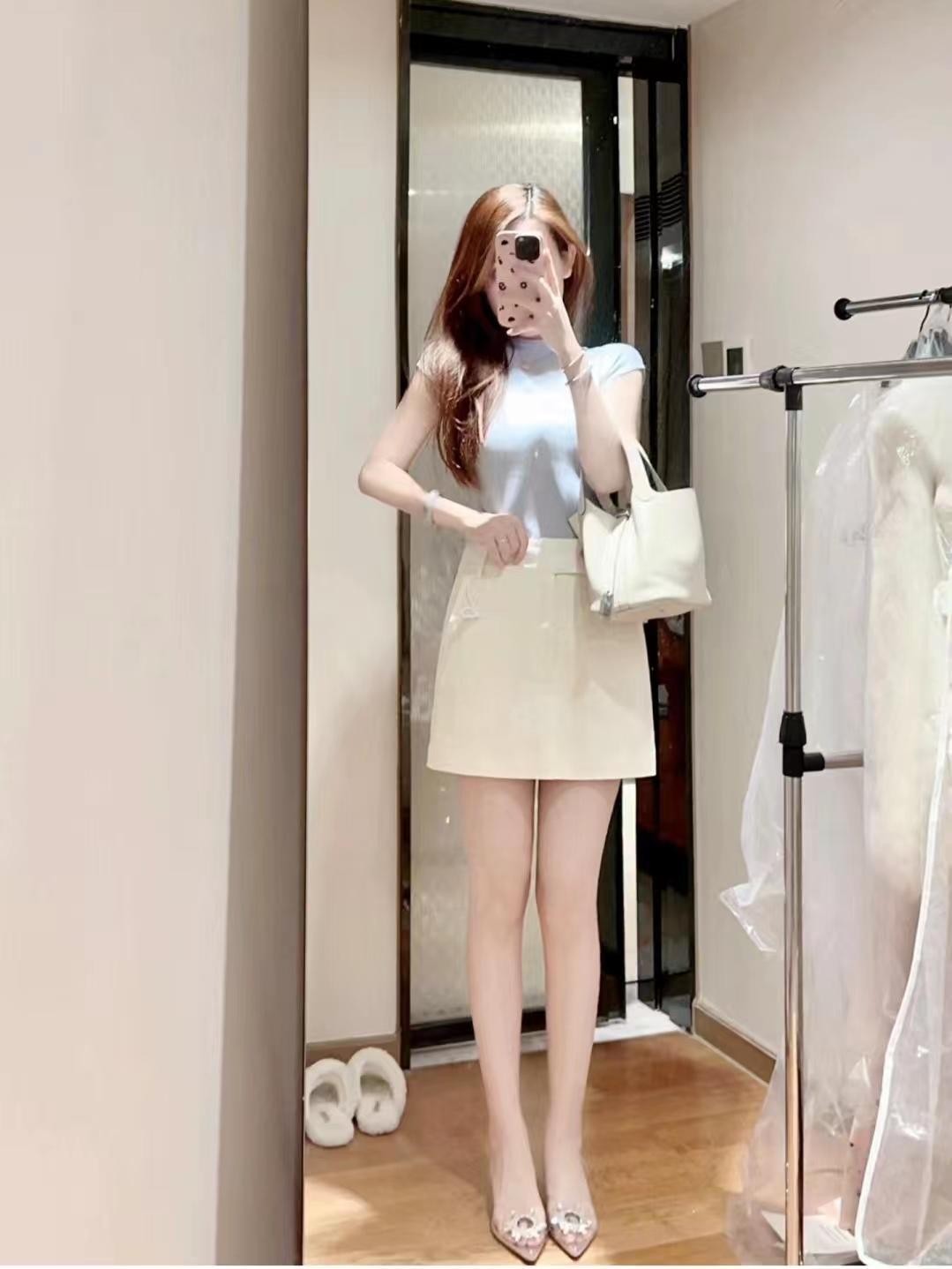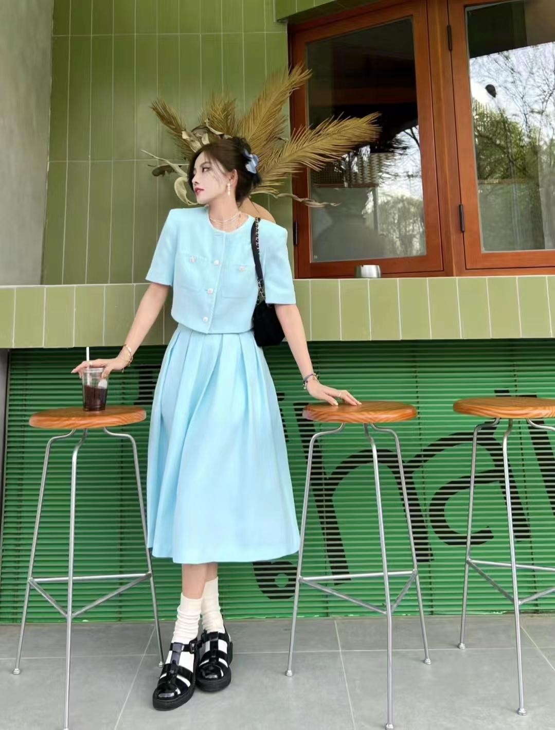 高级感温柔是这条蓝色醋酸半裙给的,温柔如海水的颜色会随着光在波动,搭配上简约气质的褶皱上衣就很好看!穿上气质的搭配优雅的去喝咖啡。