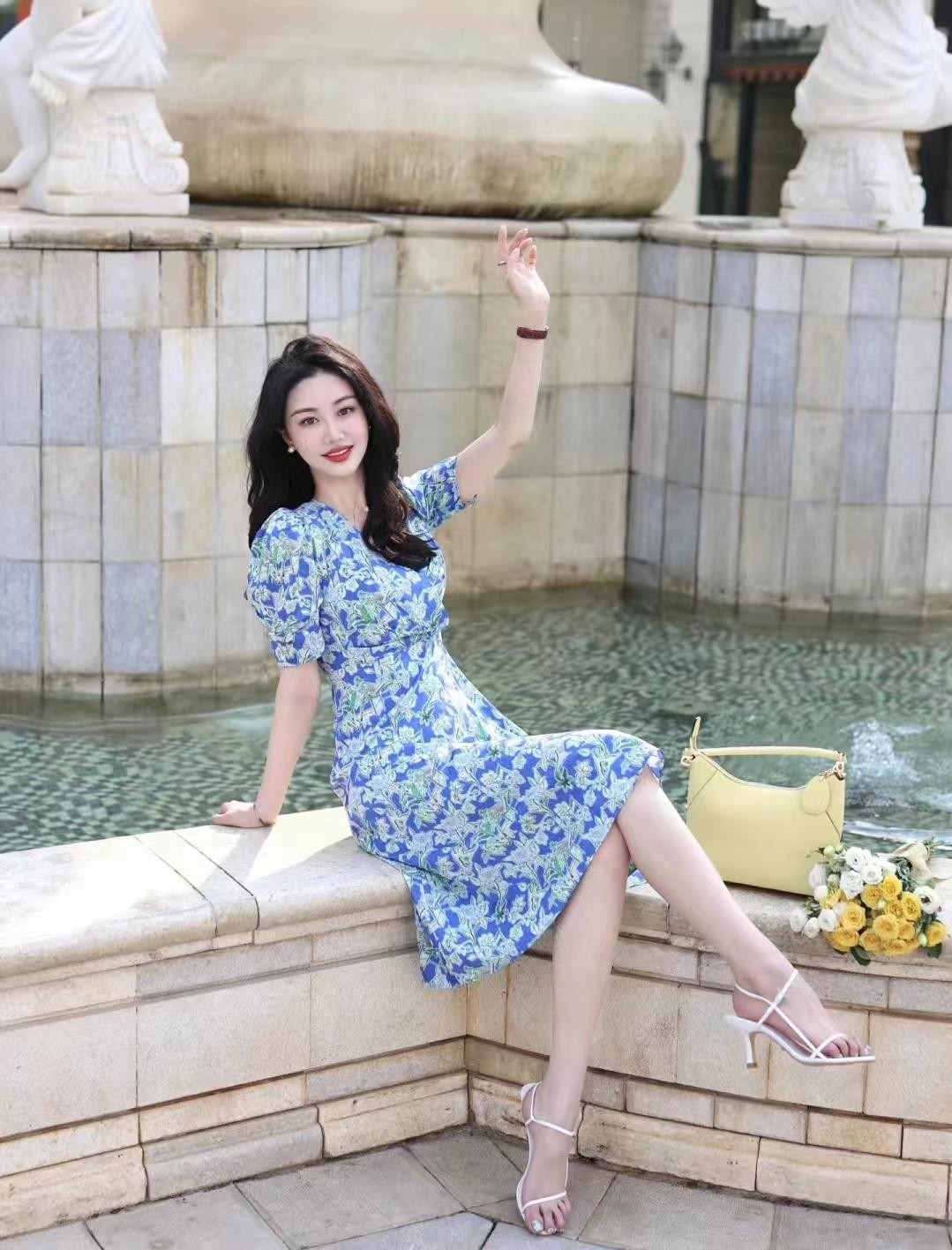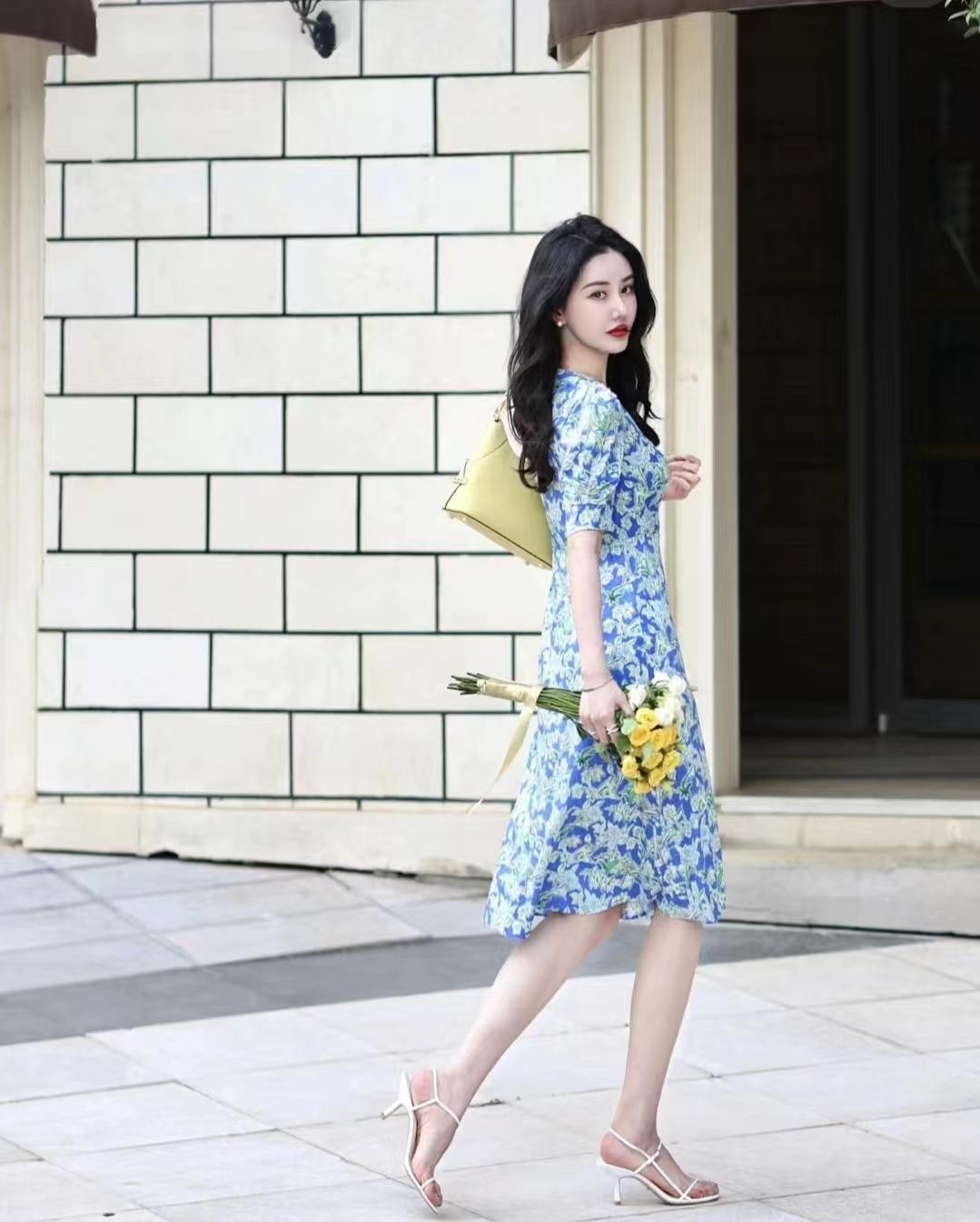 借一抹清新海盐蓝溜进夏天,换上喜欢的蓝色茶歇裙,油画感明媚又气质,慵懒的季节再合适不过了,手绘牡丹花绽放在真丝上,温柔且浪漫,午后阳光洒落在裙摆上,让人心动。