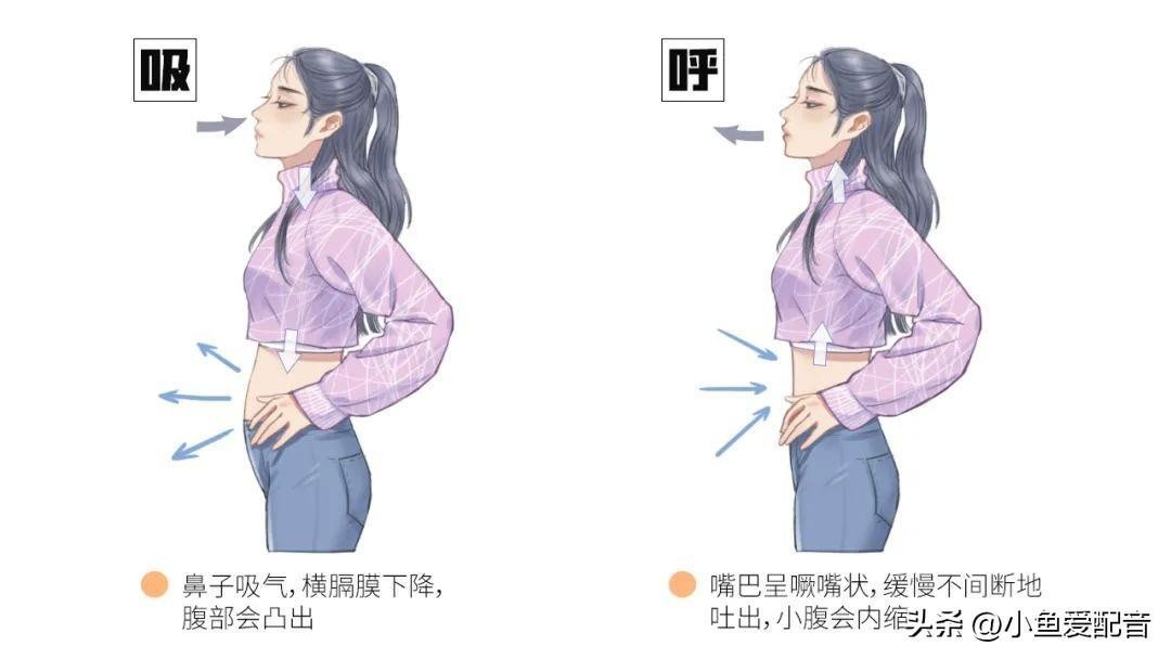 在控制气息时,我们常用的呼吸方法是“胸腹式联合呼吸”,这样的呼吸方式更能起到“以气托声”的作用,让声音听起来更明亮沉稳。而在生活中,人们大多都是浅呼吸,即只作胸部呼吸。