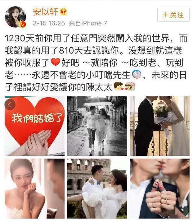 都知道陈荣炼为了追求安以轩,花了1230天,2014年在一起后,宠爱了6年。