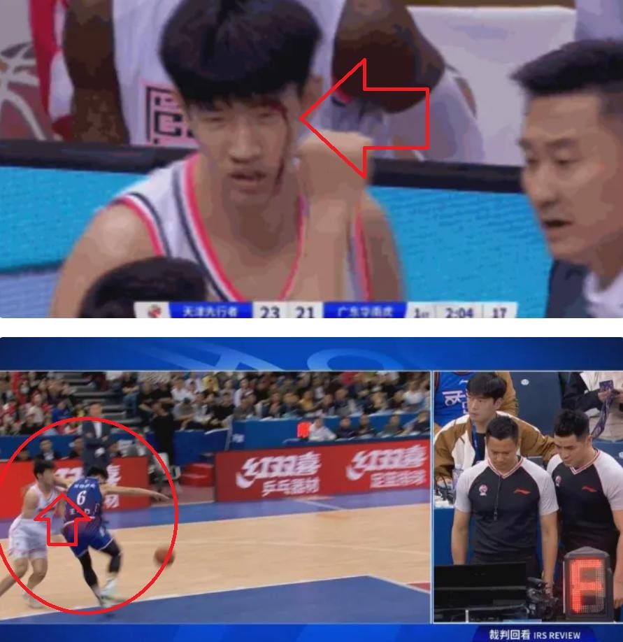 争议!广东队小将媚骨被打开,血流满面,杜锋不满裁判吹罚吃T