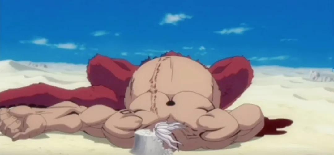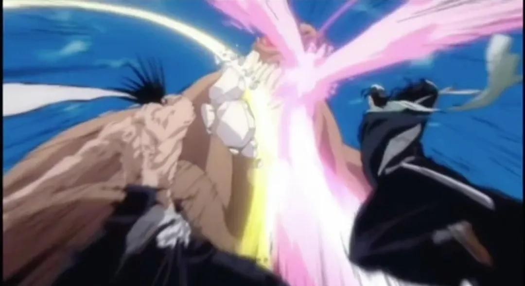 但是问题就出在这里。剑八和白哉一出场就砍断了归刃牙密的一条腿,接着剑八上去就是一顿乱砍啊,牙密都还不了手只能嗷嗷乱叫。