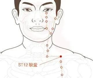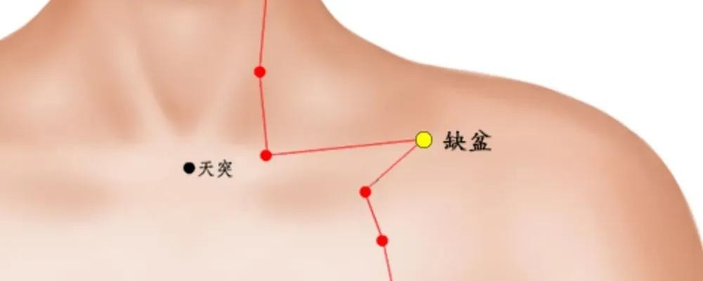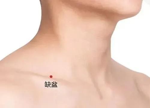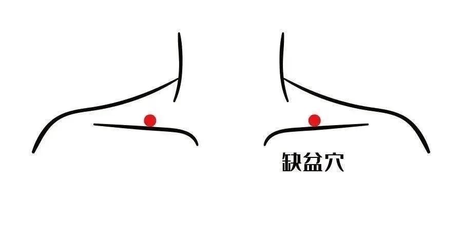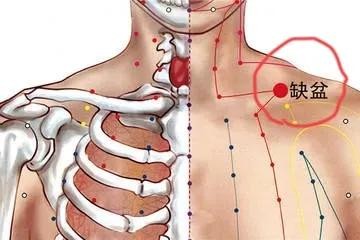 至于穴位的具体定位,我们看下教材《针灸学》的相关记载。其载:“缺盆在锁骨上窝中央,距前正中线4寸。”如果你还是找不到穴位,那人体乳中线直上锁骨上方有一凹陷,这就是缺盆穴了。一侧一穴,共计2穴。