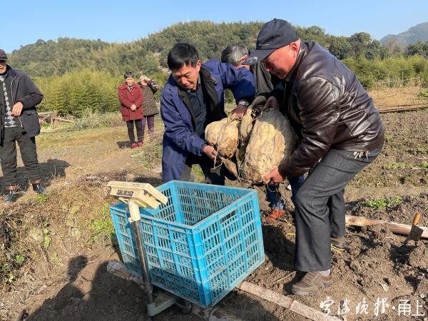 惊呆!今天上午,鄞州区塘溪镇东山村的叶大伯在地里挖出了一头“超级番薯”,足足有108斤!