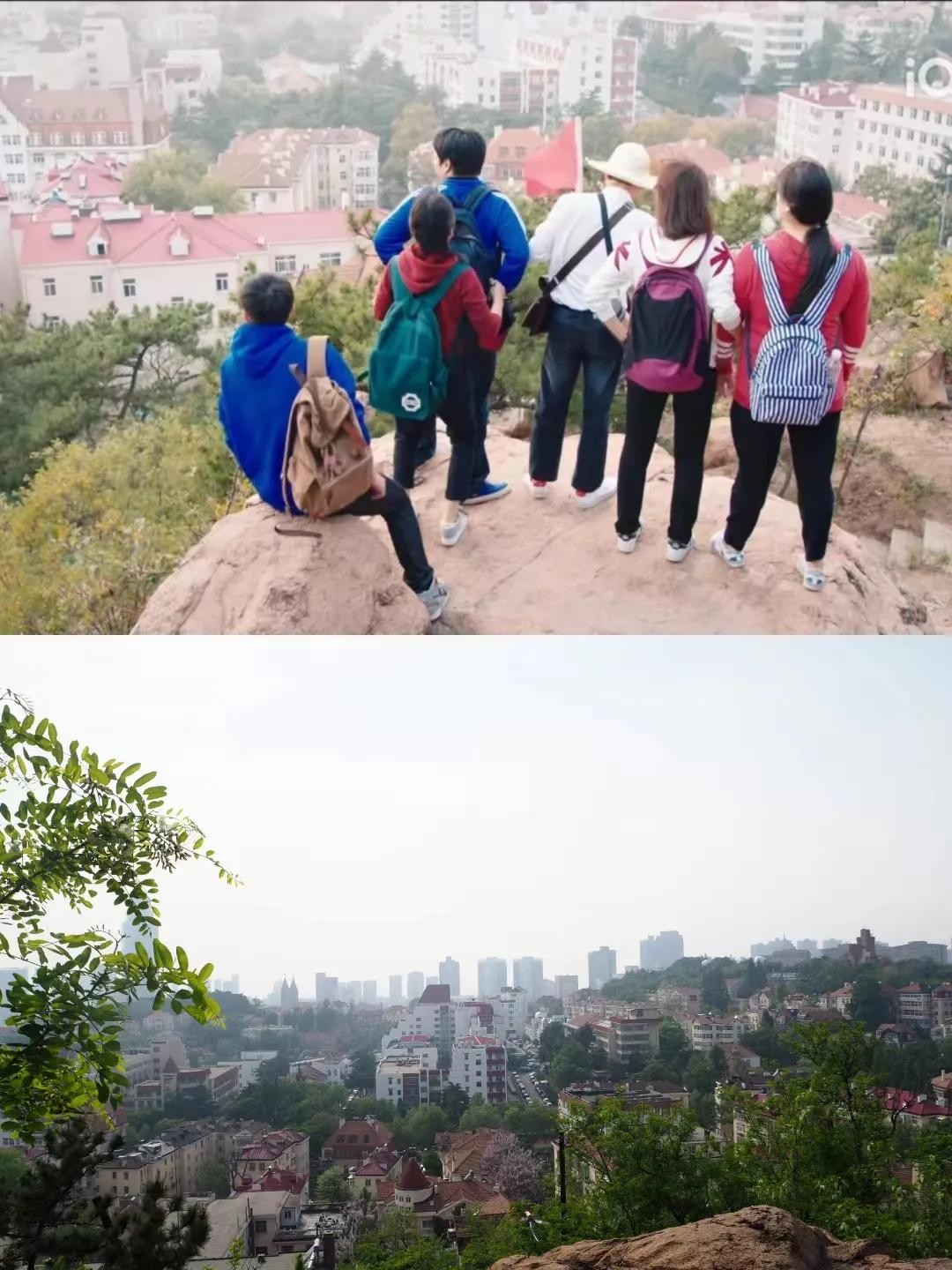 这里是五班春游的地方,从这里可以看到青岛的红瓦绿树,碧海蓝天。