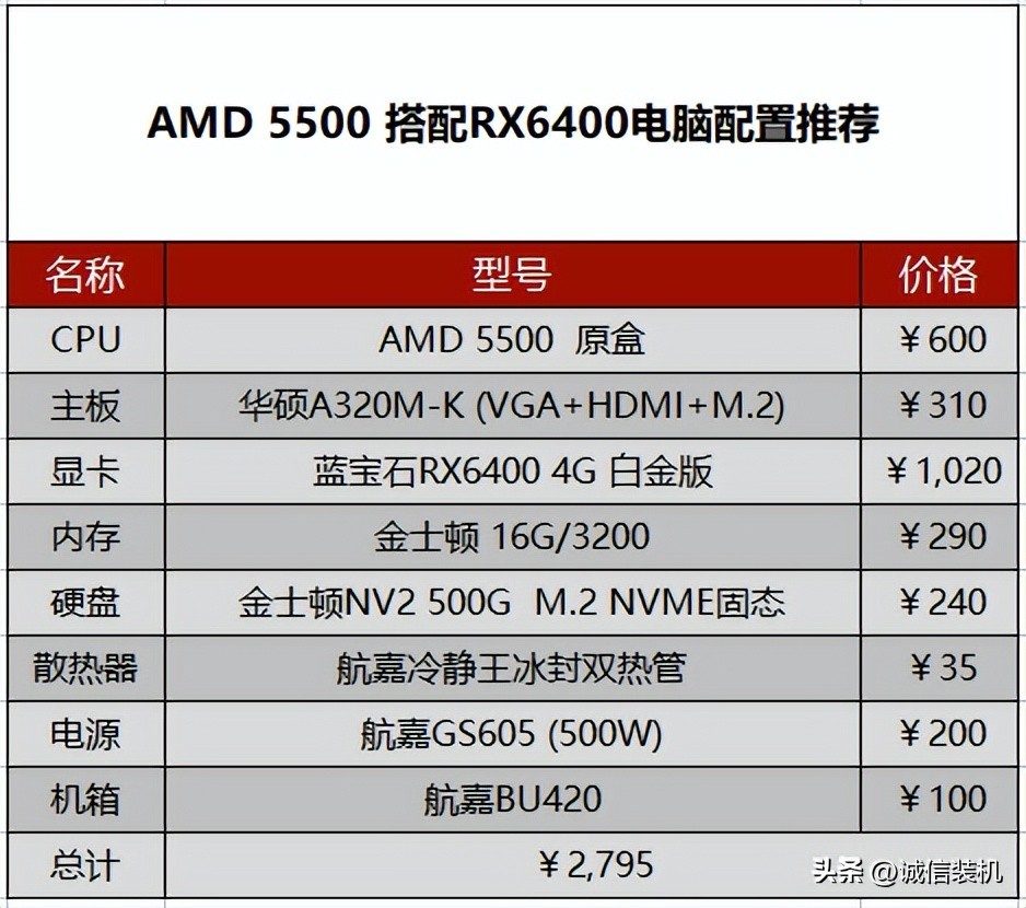 1:AMD 5500 搭配RX6400电脑配置推荐清单及价格