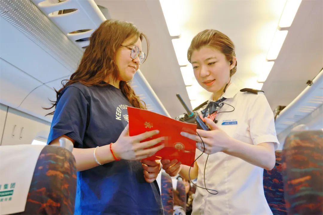 在列车上,列车员对上车旅客进行检票时,新生需要出示本人身份证及录取通知书,到达目的地出站检票时,也需要出示这些证件。