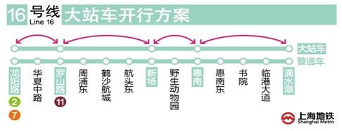 “大站车”停靠站点为:龙阳路、罗山路、新场、惠南、滴水湖;