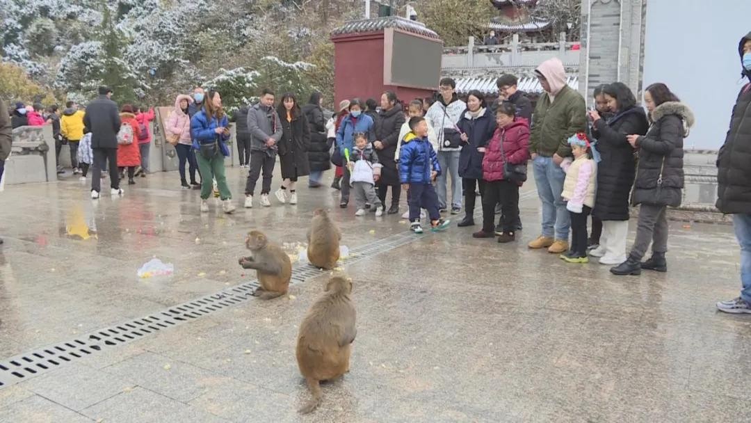 市民冯俊杰和王雪燕介绍,他们今天打了雪仗,堆了雪人,还喂了猴子,好开心。