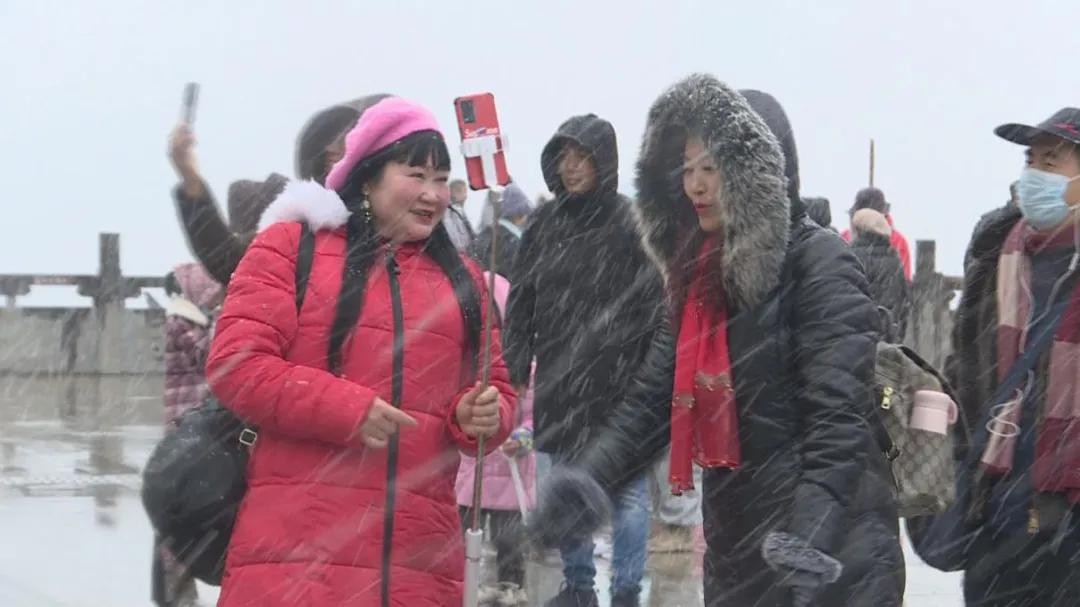 除了他们,还有不少市民游客,在赏雪中共贺新年。