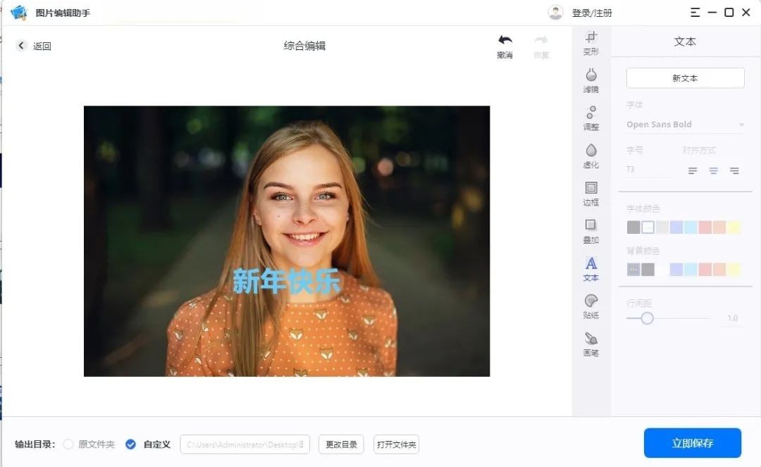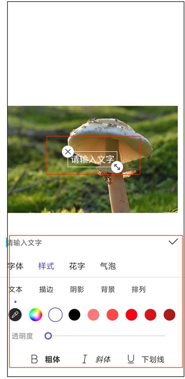 还可以可以调整字体、大小、颜色等参数,最后保存修改后的图片到手机中。