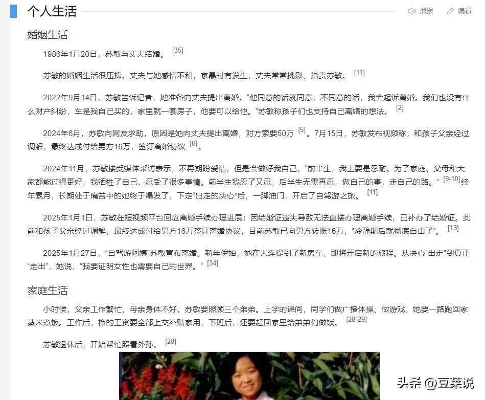 离婚后,苏敏继续她的自驾游旅程,她买了自己梦寐以求的房车,生活也更加舒适和安全,她不再需要为钱发愁,也不再需要看任何人的脸色。
