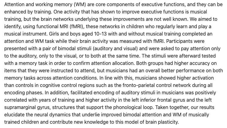 他在受过古典音乐教育和没有受过古典音乐教育的10-13岁孩童中做对比,发现同等条件下,受过古典音乐教育的孩子,大脑的注意力与记忆功能区明显表现更好。