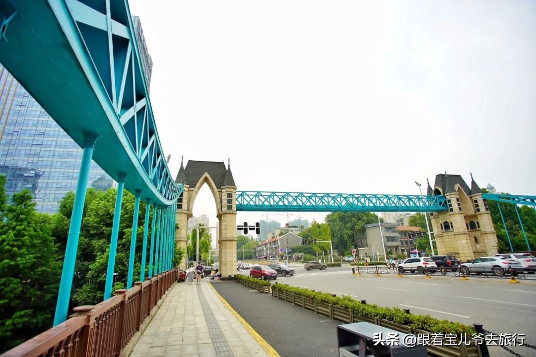 最为养眼的是位于楚河汉街牌坊附近的放鹰桥。放鹰桥横架在楚河东湖口上,采用欧洲古典“塔楼”式景观桥的设计理念和“横三段纵三段”的设计手法,使得塔楼屋顶及墙体材料具有欧式韵味。