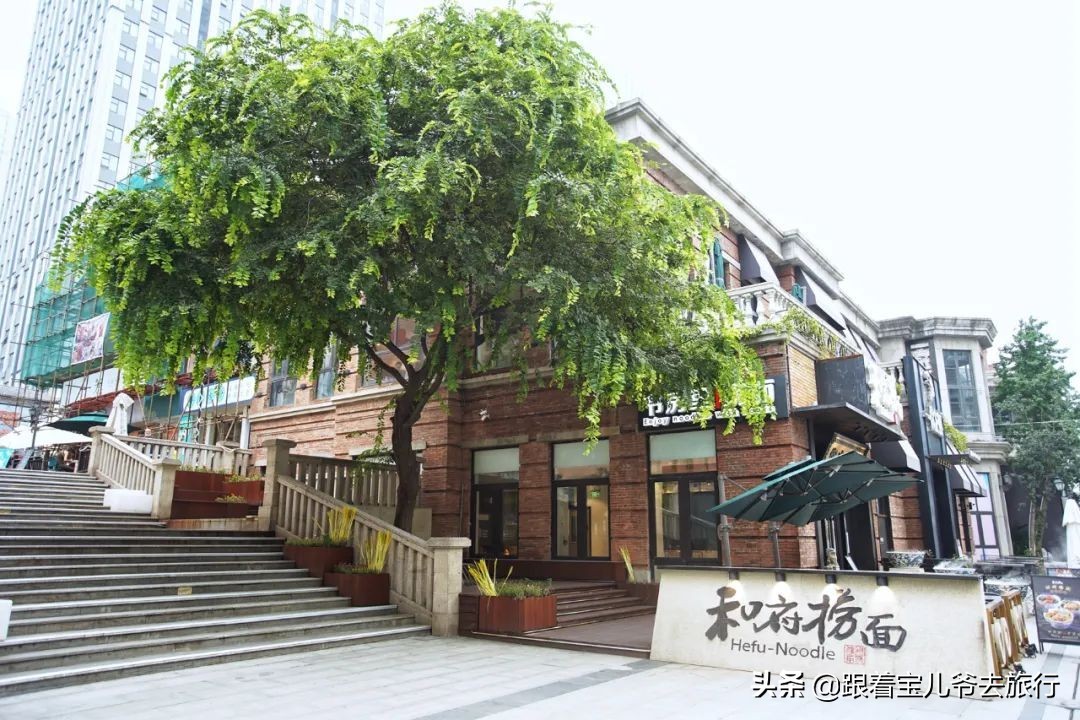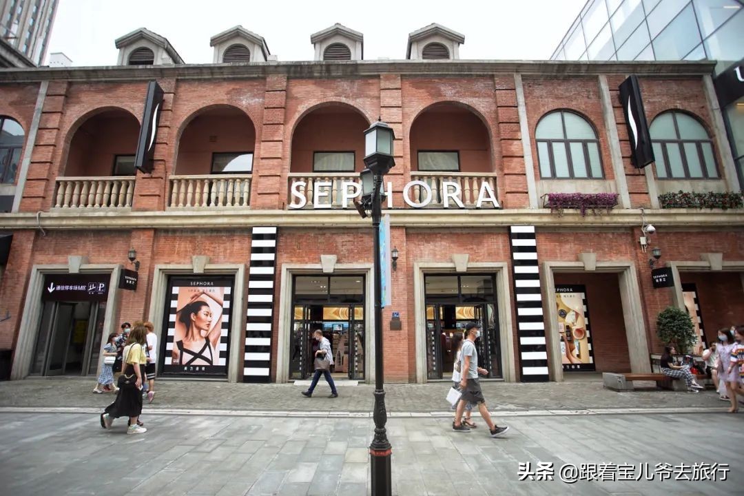 整条街道两侧,清一色民国建筑风格,其实也就是上个世纪初的欧式建筑风格,中间偶尔会夹杂一些现代化的建筑元素,摩登感强烈。
