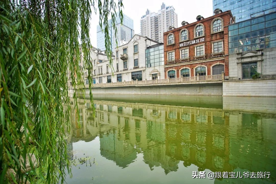 这里是东湖连通沙湖的楚河的起点,可东眺双湖桥下桥后,顺河边西行,正式进入汉街。