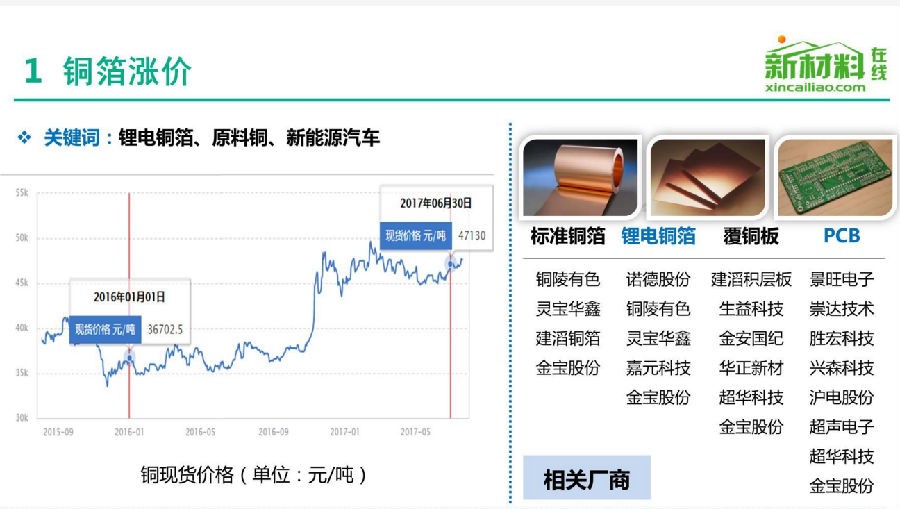 说起涨价,想必2017年涨价印象最深的要数石墨电极和铜箔。细数2016年以来暴涨的原材料,煤焦油、焦煤、动力煤、TDI、国产金红石型钛白粉、新戊二醇、顺丁橡胶、丙酮、丙烯、丁二烯、顺丁橡胶……不胜枚举。