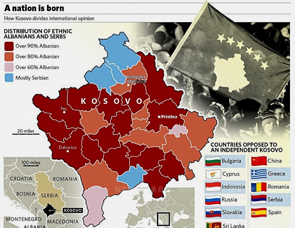 2008年,科索沃宣布独立,但并没有得到广泛的国际承认。主要原因包括塞尔维亚的坚决反对、美俄之间的大国博弈,以及科索沃的独立理由在国际上的争议性。