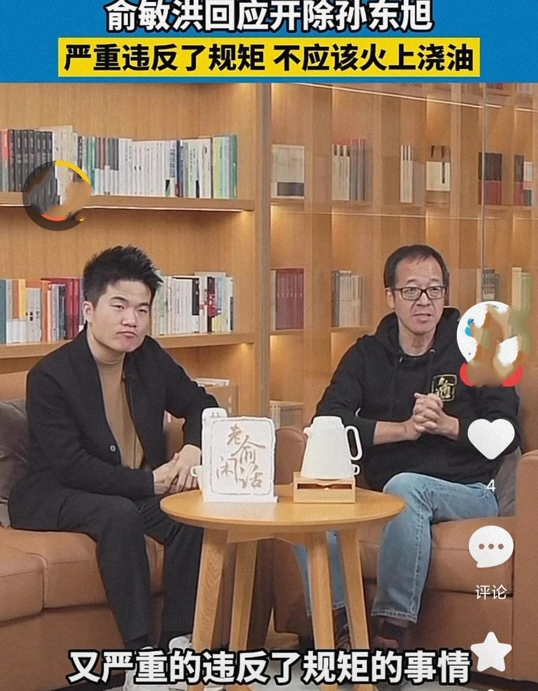 第三,俞敏洪透露免除孙旭东CEO职务的真正原因,严重违反了规矩,作为CEO心态不够稳定,没有第一时间处理好问题,更不应该火上浇油,到网上发表不恰当的言辞,引起网友的不满,言外之意,这件事与董宇辉无关。