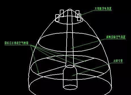 美国BOBLAZAR揭露的UFO。底部有个反应堆,产生重力波,通过三个重力波放大装置飞行。
