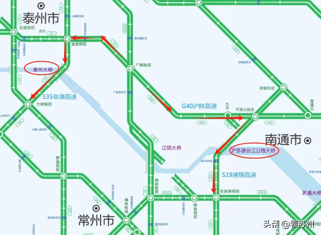 高速公路绕行路线:可提前选择S35阜溧高速泰州大桥、S19通锡高速沪苏通公铁大桥进行绕行绕行。