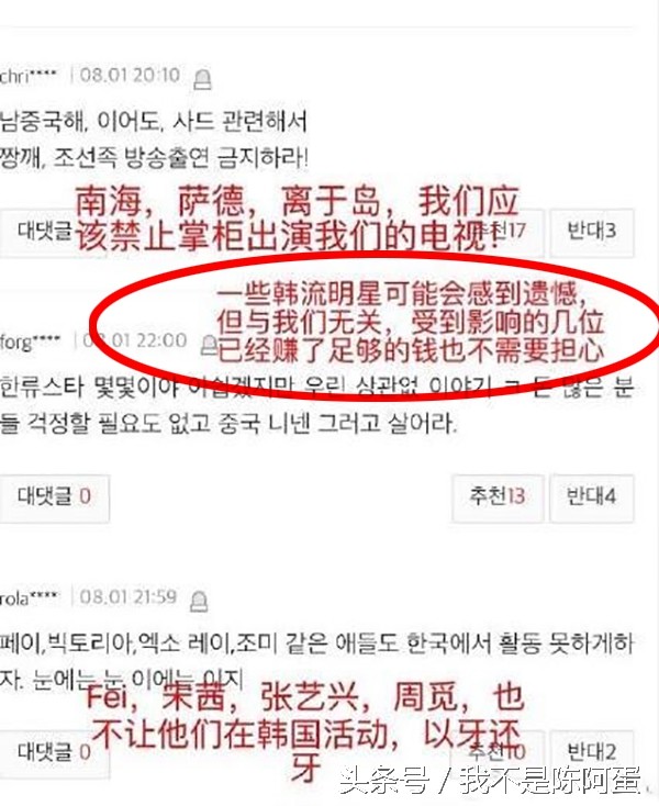 消息一发布,韩国网民纷纷建议禁止张艺兴,宋茜等中国艺人在韩国的相关活动及发展,有图有真相。