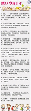 纸狮子是死狮子,石狮子不能撕,要想说清这几个字,读准四十石死撕 ②白石白又滑,搬来白石搭白塔。