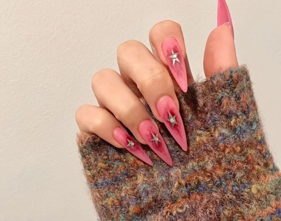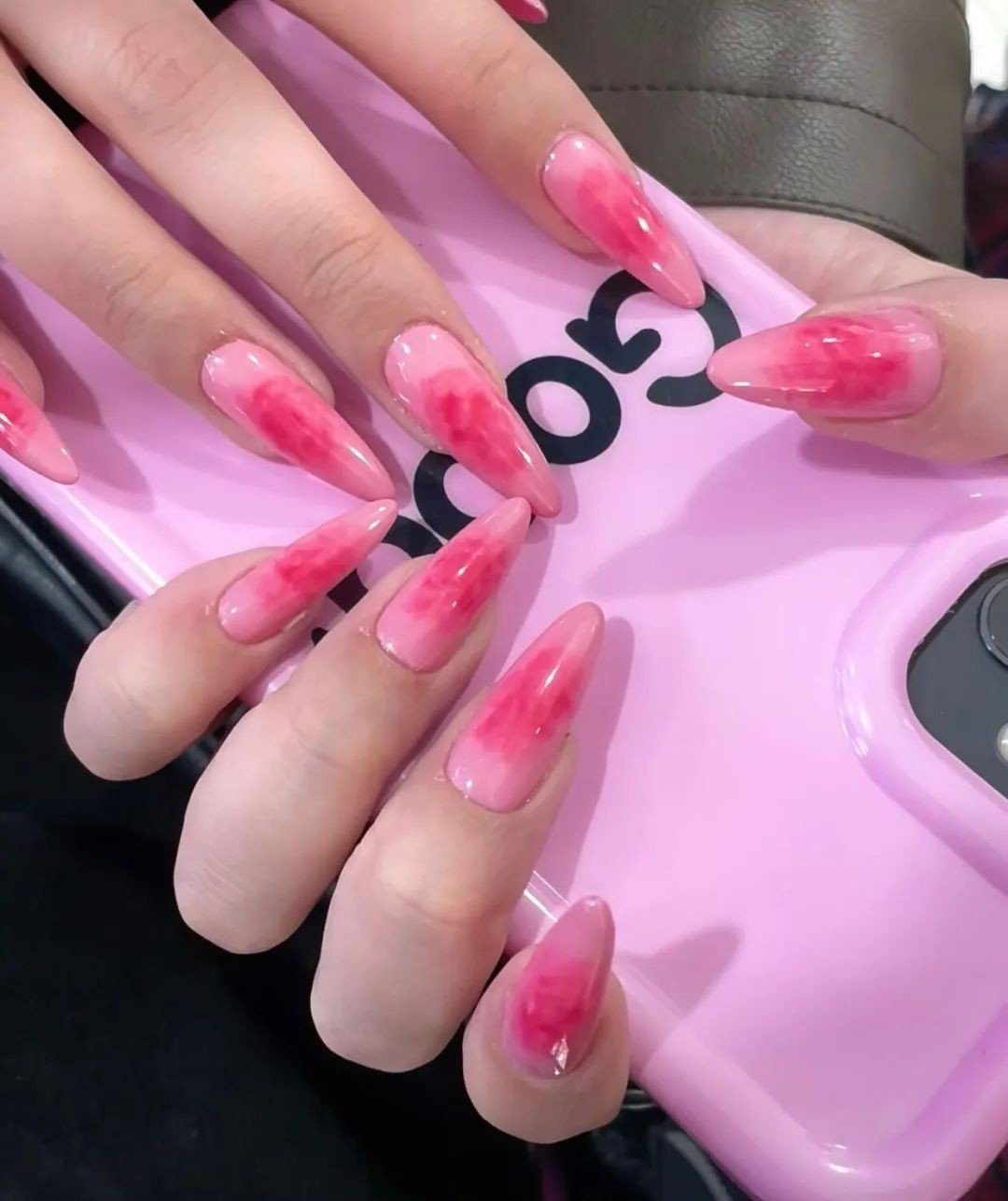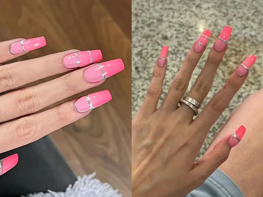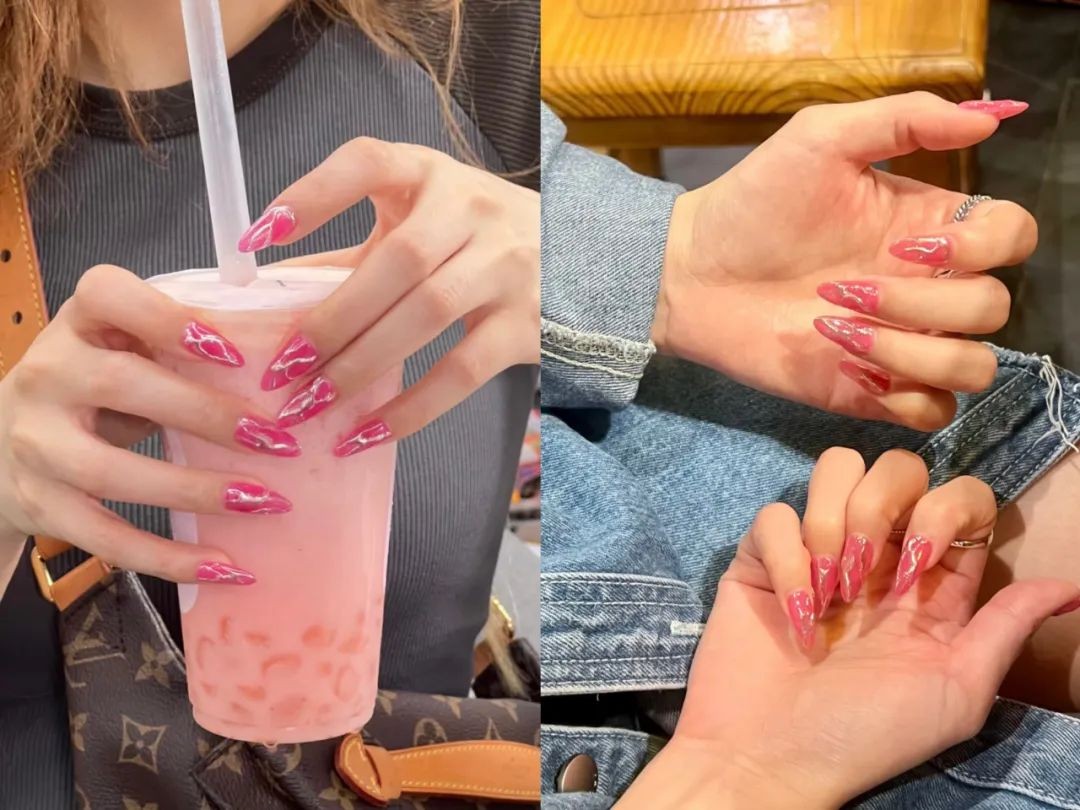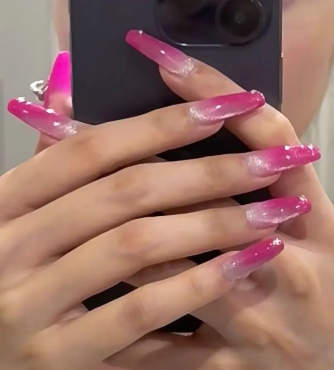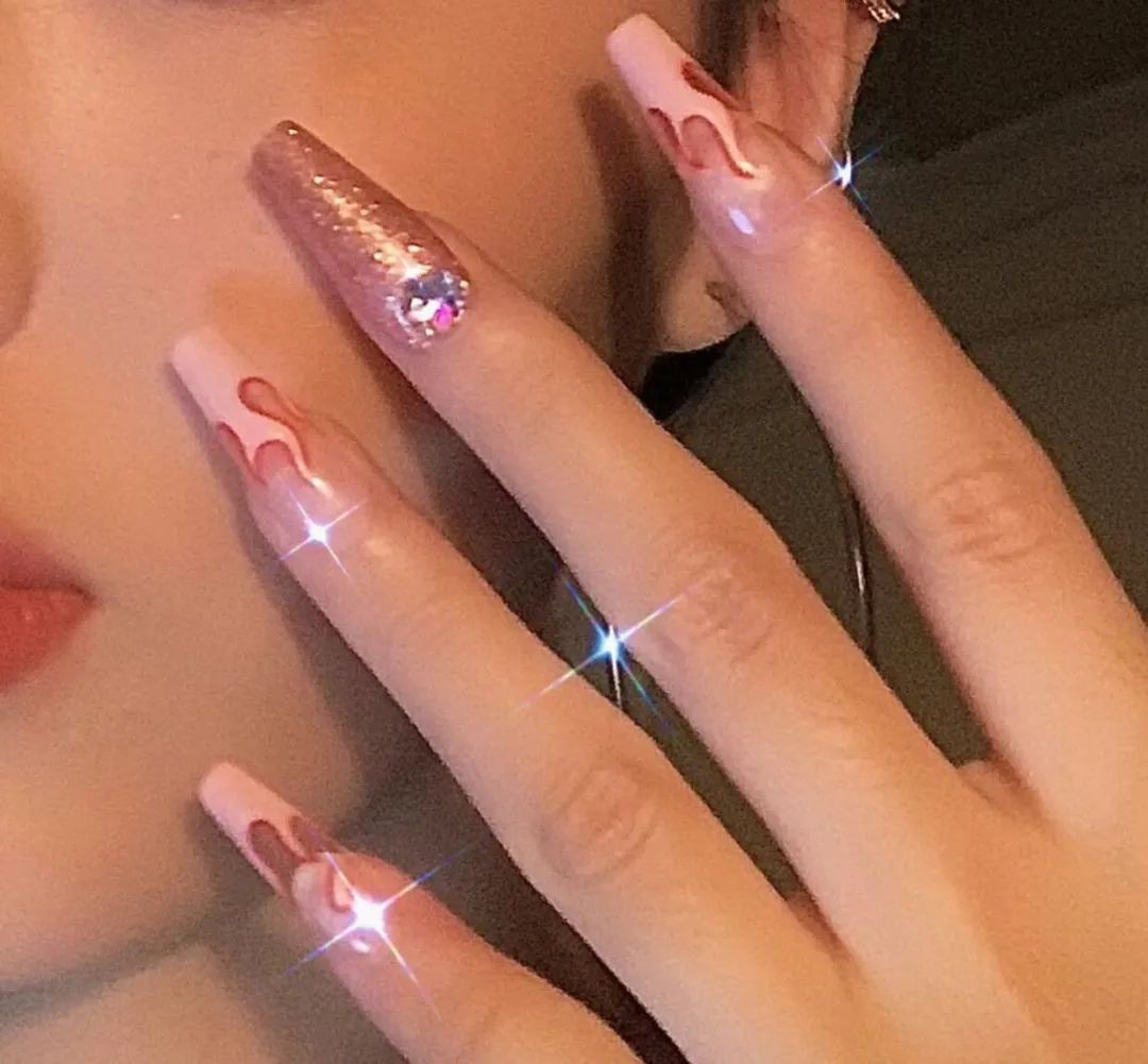 欧美梯形粉色火焰甲,粉嫩中带些slay,超级芭比风。
