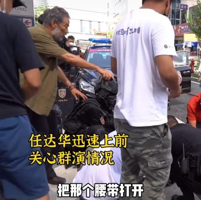 任达华在喧闹的人群中迅速反应过来,冷静指挥众人将那名昏倒的演员送去休息。