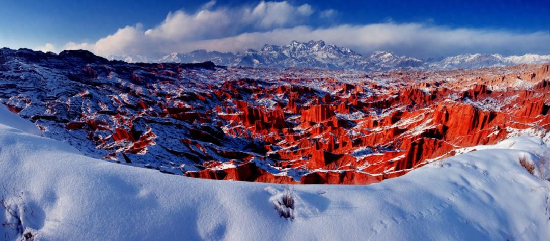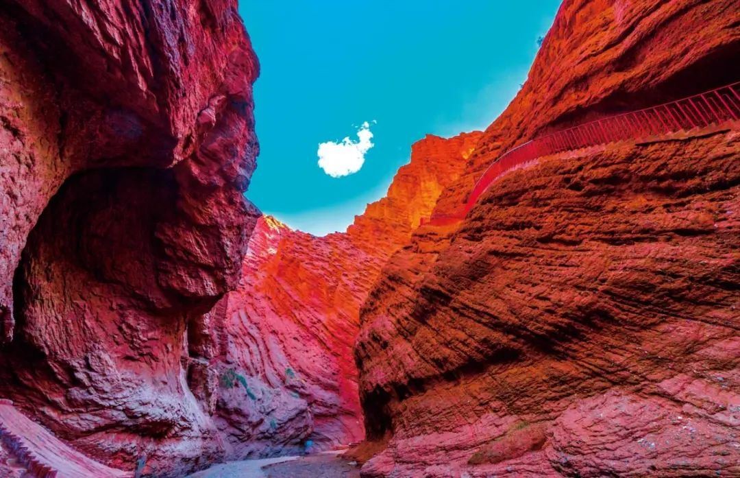 天山南北规模最大、美学价值最高的红层峡谷,被誉为中国西部最美的丹霞地质奇景,中国最大的岩盐喀斯特地质胜景,被《中国国家地理》杂志誉为“中国红层最丰富、最多样、最杰出的代表”。