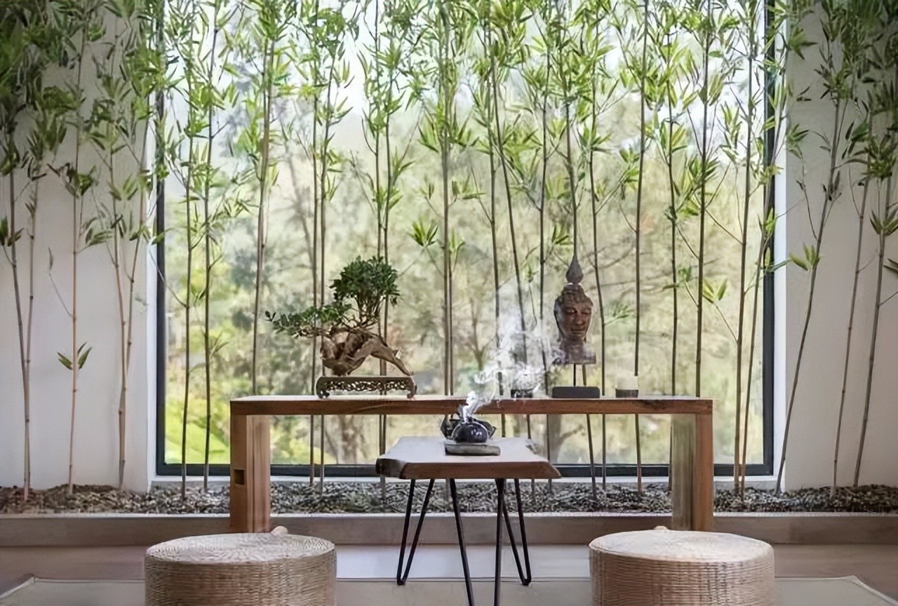4. 以自然为主,可用适当的绿植装饰,多用竹、木、石这些随处可见的材料,既能节省成本,又能打造古朴的氛围。