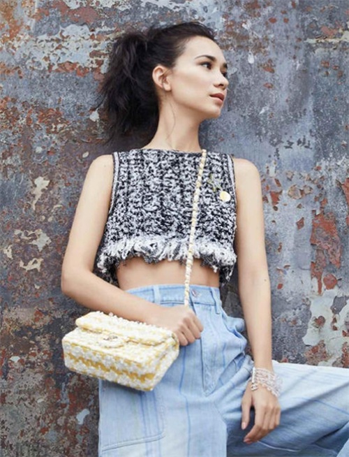 这种抹胸内衣加白色小马甲的搭配还是很不错的,只是为什么要穿一条低腰的牛仔裤呢?本来抹胸的衣服就很显胖,平常在穿这种衣服的时候都是搭配高腰的裤子,这样展示出来的就是最纤细的地方。本来好好的穿搭,让低腰牛仔裤给破坏了。